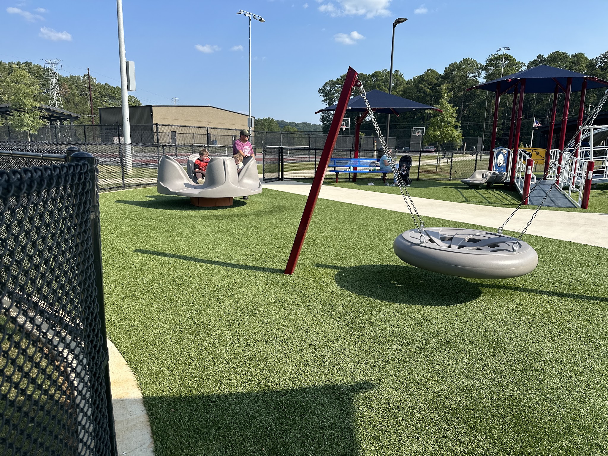 Patriot Park caters to families with a variety of recreational amenities. The playground features slides and swings that delight children, while basketball courts provide opportunities for active recreation. Picnic tables are scattered throughout the grounds, making it an ideal spot for family gatherings and outdoor meals. The park welcomes dogs and service animals, allowing pet owners to enjoy the space with their companions. Public restrooms are available for visitor convenience, and the overall accessibility features ensure that everyone can comfortably spend time here.